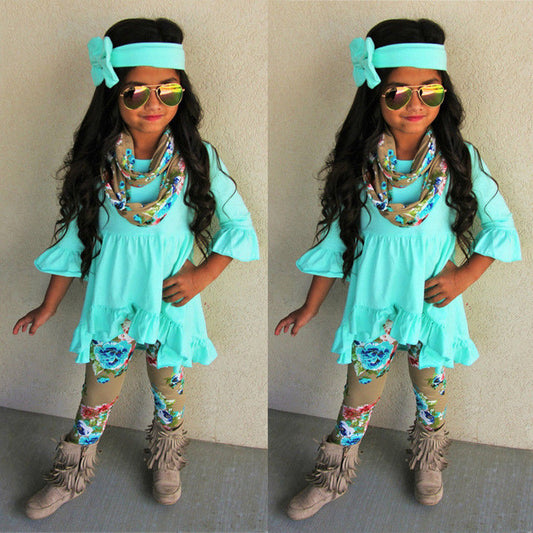 2019 New Arrival Boutique Toddler Kids Baby Girl Solid Color Top Dress Floral Printed Pants Legging Outfit Clothes