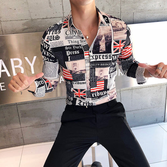 2019 New Luxury Boutique Fashion Peacock Print Mens Slim Casual Long-sleeved Shirt Personality Design Male Social Leisure Shirts