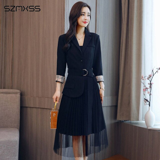 2018 autumn new Korean women dresses simple self-cultivation wild trend dress suit collar stitching long-sleeve Dress